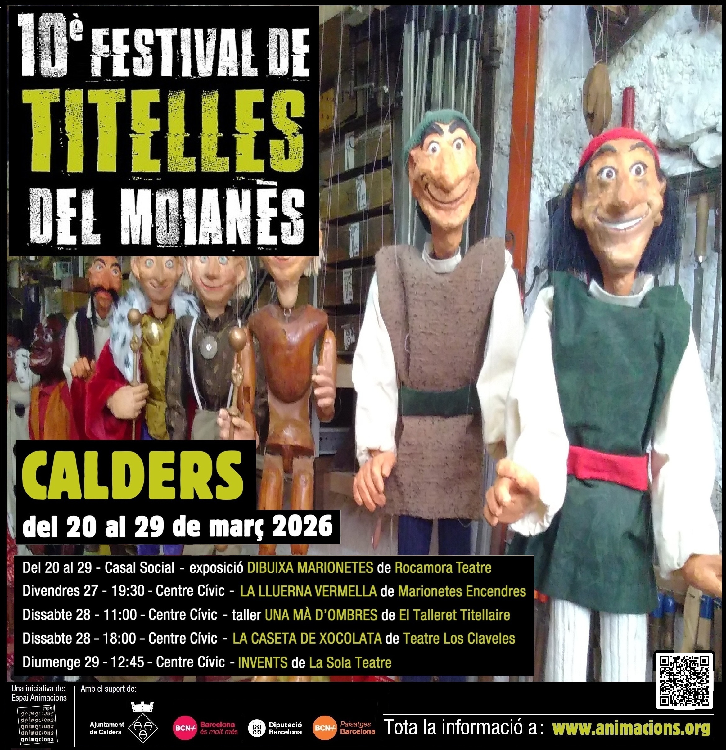 La desena edició del Festival de Titelles del Moianès es promou, organitza i dirigeix des d’Espai Animacions (Centre d’Iniciatives Titellaires), en coordinació i amb el suport de l’Ajuntament de Calders. Enguany, abandonem la denominació d’Aplec Titellaire que havíem usat el 2024 i 2025, recuperant la de Festival de Titelles del Moianès, per celebrar haver arribat a la desena edició.